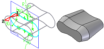 “拉伸”、“除料”和“拉伸曲面”命令允许您将拔模角度或加冠应用到由轮廓元素定义的特征面。