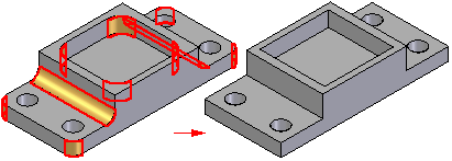 使用“删除倒圆”命令 从模型中删除倒圆。可以使用此命令删除在 创物3D 中使用特征命令构造的圆柱面和锥面,或从其他应用程序导入的模型上的圆柱面和锥面。