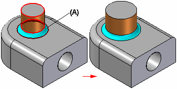 可以使用“自动选择熔接”选项选择与要偏置的面相邻的熔接 (A)。如果需要与偏置面保持相切的零件上存在相邻圆角或倒圆,但您不希望更改它们的当前尺寸,则可以使用该选项。