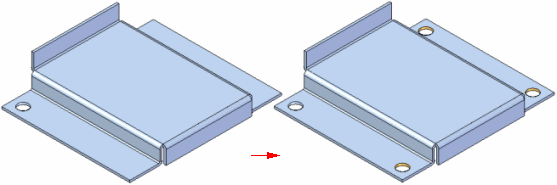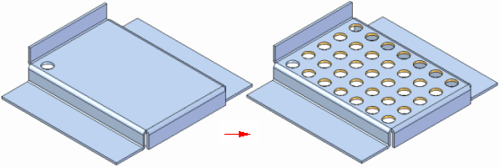 当阵列特征将同一组面修改为原特征时,使用快速阵列。显示的除料阵列将零件上两个相同的面修改为原除料特征。此时,快速阵列为最佳选择。