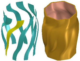 在构造使用自由形式曲面的模型时,对非特征元素进行阵列非常有用。例如,可以构造一个放样曲面,然后构造该放样曲面的圆形阵列。