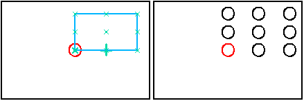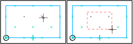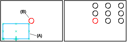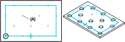 可以使用命令条上的抑制事例按钮来抑制矩形和圆形阵列中的阵列事例。轮廓窗口打开时,选择阵列轮廓,然后单击事例符号,指定要抑制的事例 (A)。符号能更改大小和颜色以指示对应的事例已被抑制。