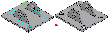 可以阵列化加工特征本身或与基于轮廓的特征一起阵列化。要阵列化加工特征本身,零件几何体必须允许进行阵列化。