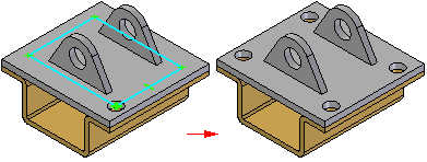 可以在启动阵列命令之前或之后选择零件和钣金文档。可以在图形窗口或路径查找器中选择特征。可以选择基于轮廓的特征或加工特征,但是按加工特征自身阵列加工特征时,会应用特殊规则。