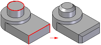 当构造内缩相等倒斜角特征时,仅需选择要添加倒斜角的边即可。如果多条边具有相同的深度值,则可以通过单一操作来对它们添加倒斜角。当构造深度值相同的倒斜角时,通常最好在一次操作中为尽可能多的边添加倒斜角。