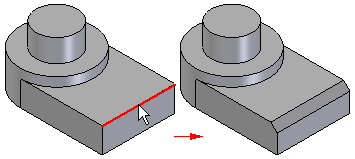 可在两个面之间 公共边上构造倒斜角。通常,应当在模型接近完成时构造倒斜角特征。在大多数零件中,在为基于轮廓的特征绘制轮廓时,不应该包括小型倒斜角。这允许以后将倒斜角作为加工特征来添加,这样,就可以更快捷且更容易地进行更改。