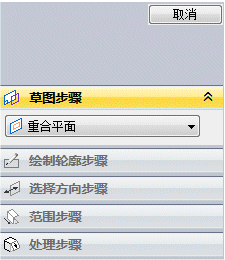 绘制轮廓步骤 - 在轮廓视图中绘制轮廓。当构造特征时自动激活“绘制轮廓步骤”。 |