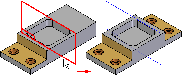 可以使用镜像命令来镜像一个或多个特征、面或整个零件。镜像平面可以是参考平面或平的面。