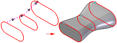 可以使用若干选项来控制端部条件,即放样特征与第一个和最后一个横截面相交的形状。可用于定义端部条件的选项取决于您选择用来定义横截面的元素类型。