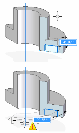 要指定特征范围,单击旋转手柄上的圆环,然后执行以下操作之一: