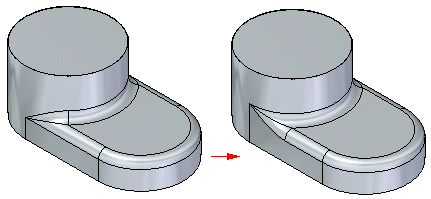尽管两个结果都有效,但一种解决方案可能比另一种更易于制造,或者更具美感。在这样的情况下,您就想要试验一下:以不同的次序应用倒圆来确定哪种结果更适合您的需求。