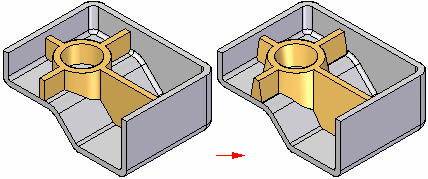 在同步建模环境中,初始草图可定义网格筋。在创建特征期间会使用草图且草图与网格筋特征不关联。创建特征之后,可添加尺寸来控制网格筋。可标出到肋板中点的尺寸。在命令条上,必须打开中点关键点选项以定位肋板中点,从而标出到此中点的尺寸。要删除肋板剖面,请选择要移除的肋板端上的两个面,然后按 Delete 键。要将新剖面添加到网格筋,必须创建新的肋板。