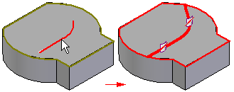 当使用曲线或边(如草图)作为分割元素来分割面时,分割元素必须位于要分割的面上。可以使用投影曲线命令将元素投影到 3D 面上。