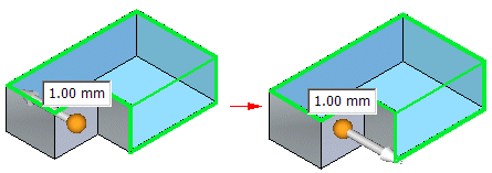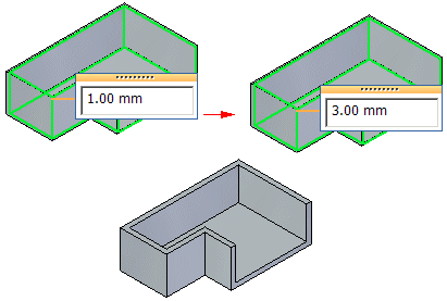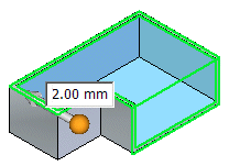您可以编辑薄壁使某些壁厚于或薄于公共壁厚。单击要应用非同一厚度的面并键入非同一厚度值。