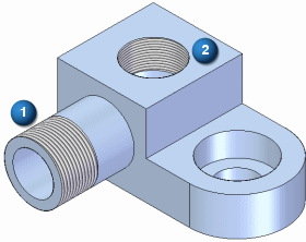 对于外螺纹,圆柱直径 (1) 必须与孔数据库中的标称直径值相匹配。对于内螺纹,圆柱直径 (2) 必须与孔数据库中的螺孔钻直径值相匹配。