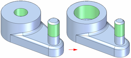 例如,如果原始螺纹孔定义为标称直径孔为 .50 的 1/2–13 UNC 螺纹,并且在变量表中将标称直径编辑为 .75,则将自动应用 3/4-10 UNC 螺纹。