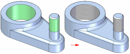 在 C:\Program Files\YuanSuan\YuanSuan CAD 2021\Images\Textures\Other 文件夹中有一个 threads.jpg 文件,该文件也可用于创建您自己的螺纹样式以显示纹理。使用“视图”选项卡上的“样式”命令,可以对 Thread 样式及任何其他面样式的显示特性进行调整。