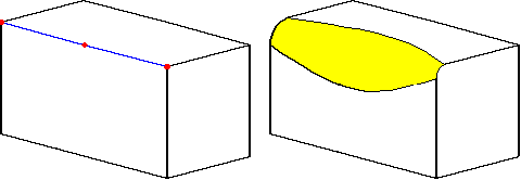 下图显示在边的两个端点和中点处具有不同半径值的倒圆。