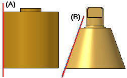 草图平面必须与输入曲面之一相切。例如,参考平面与圆柱 (A) 或圆锥 (B) 正确相切,如图所示