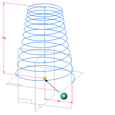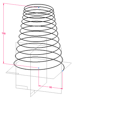创建锥形、可变螺距的螺旋曲线。该示例说明如何使用以前定义的几何体(如下所示)上的三个点创建螺旋曲线。