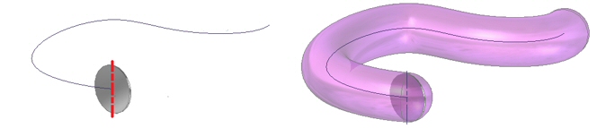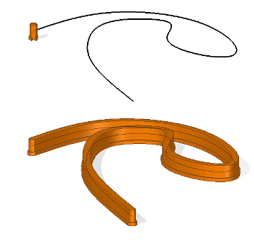 通过沿路径移动旋转工具体创建实体。旋转工具体在沿路径移动时增加体积。