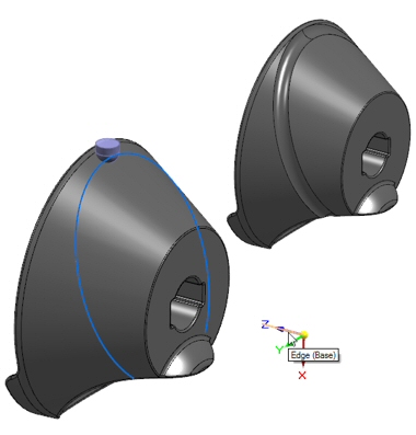 如果该工具垂直于 2D 路径,轴锁定方向默认为已设置。对于工具轴不垂直于路径的 3D 和 2D 路径,需要定义轴锁定方向。可以根据边、特征轴、坐标系轴或平面的方向定义锁定轴方向。