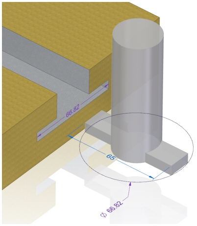 在下面的示例中,工具遵循 3D 路径。轴锁定方向由圆柱的平面表示。