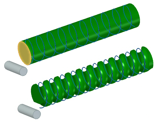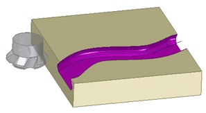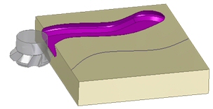 通过沿路径移动旋转工具体在实体中创建除料。旋转工具体在沿路径移动时移除体积。