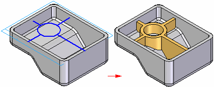 使用“肋板”和“网格筋”命令可在零件上创建肋板。
