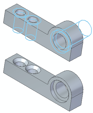 在零件建模过程中,有时将使用圆形除料和锥形除料对孔进行建模。在某些情况下,此建模方法已足够。处理导入的文件(零件副本)时,将按照圆形/锥形面来图示孔。