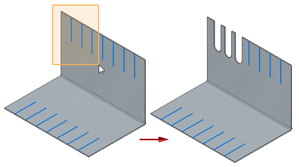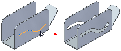可以使用槽命令,在同步建模或顺序建模零件和钣金环境中,沿相切连续的草图方向创建槽特征。