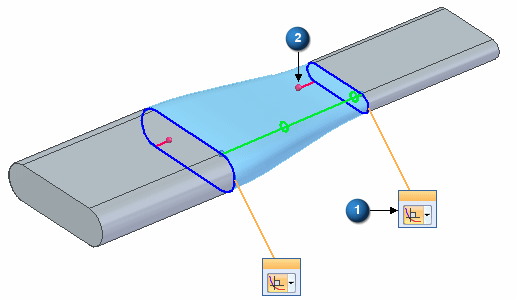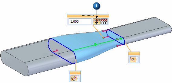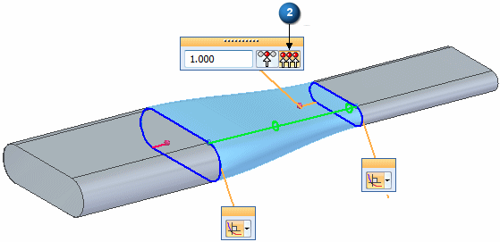 创建和编辑蓝面曲面、放样拉伸或关键点曲线时,有两种相切大小手柄选项可用。