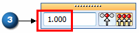 相切大小手柄 (2) - 该拖动手柄也支持大小动态输入框 (3)。