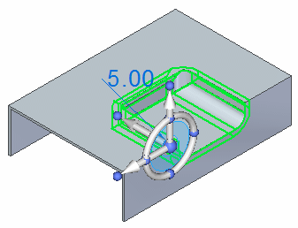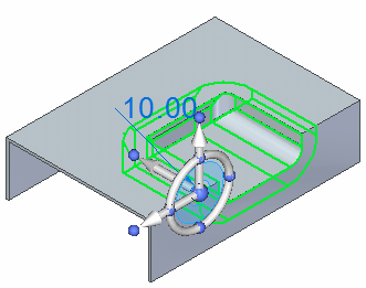 在路径查找器或图形窗口中选择一个压花特征,以显示指示了厚度值的编辑手柄。