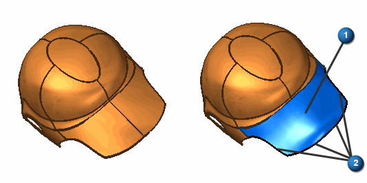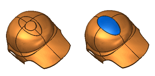 以下示例使用重定义曲面替换了五个形成头盔椭圆形顶部的曲面。