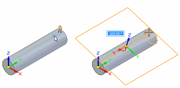 在圆柱或圆锥上放置孔时,通过单击锁定图标,您可以定义平面。将显示动态相切平面。定位相切平面,然后单击。单击时,平面将会锁定。