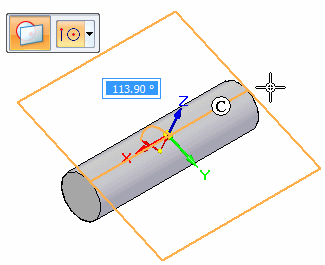 在圆柱中放置孔时,当光标移至圆柱上方时按下 F3,或单击锁定图标。相切平面命令将激活。可以通过动态拖动或通过输入角度值来放置相切平面,然后按 Enter。相切平面锁定后,可将孔移至切线上方 (C),孔将锁定至该切线。