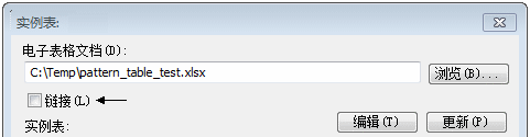 Excel 电子表格可以链接到文件,或嵌入文件。首先浏览驱动阵列的 Excel 电子表格。如果选中链接框,该电子表格将链接到文件。如果取消选中链接框,软件会将该 Excel 电子表格嵌入文件。
