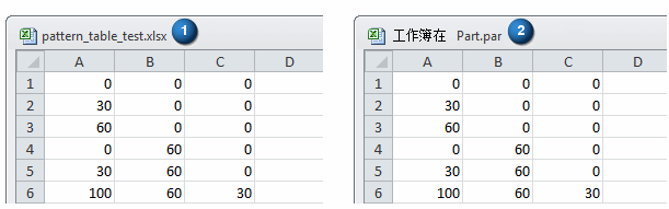 Excel 电子表格中的第一行定义主参考坐标,并在实例表对话框中显示为第一行。所有阵列实例的方向是相对于主实例的方向计算的。