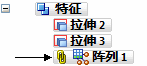 要编辑同步建模的按表创建阵列特征,请选择该特征,然后单击阵列手柄。可以编辑阵列定义中使用的任何其他步骤。