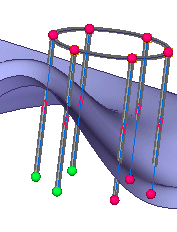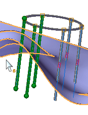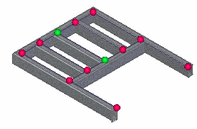 整个框架的所有端部条件的手柄点与自动选择的选定框架部件的手柄点一起显示。
