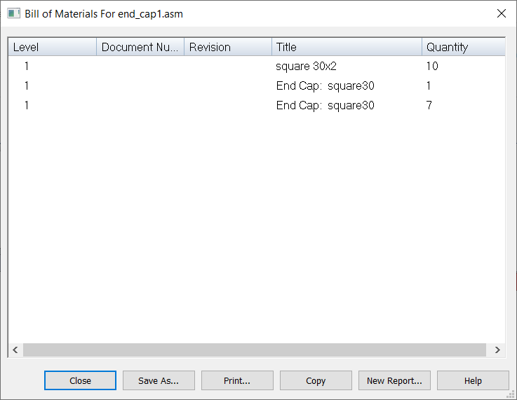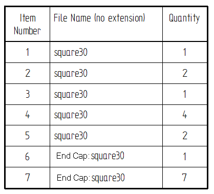 从框架装配创建的图纸将显示并列出零件明细表中的端部封盖。