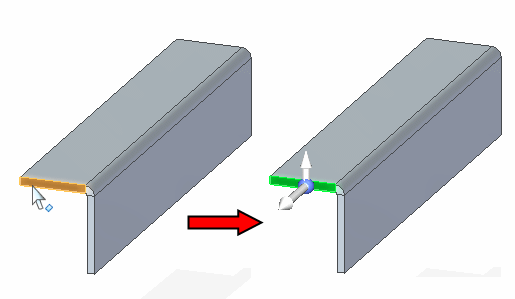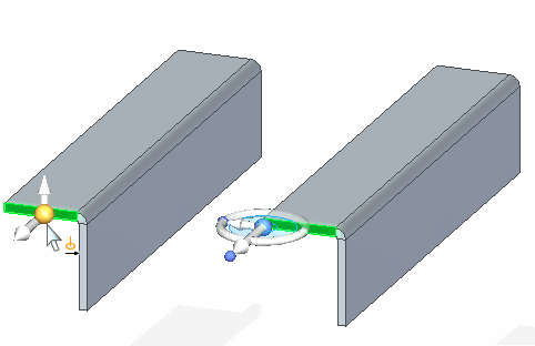 可用于对模型几何体进行操作的图形工具或手柄。选择圆柱面、阵列、制造特征(如孔和凹坑)以及钣金模型中的平厚面时,会显示 2D 方向盘。