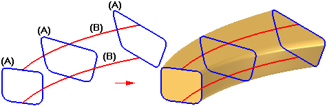 多横截面 (A) 和多路径 (B) 扫掠拉伸。