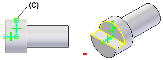 虽然并不存在实际的边,但 创物3D 中的某些操作允许您使用此理论意义上的边。例如,可在轮廓线和轮廓边之间添加连接关系 (C) 来创建一个切口特征。