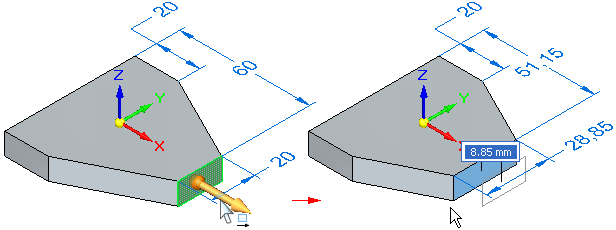 方向盘通常是逐渐显示的。例如,如果选择单个模型面,则只会显示方向盘的主轴和原点。