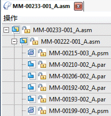 文档可包括:零件、子装配、装配副本特征等。文档树可以用来: