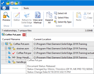 如果您指定了已发放状态的文档的保存位置(创物3D 选项对话框→管理选项卡→生命周期页面),设计管理器会更新相关的列,从而为文档的状态更改做准备。