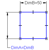用一个尺寸控制另一个尺寸 (尺寸 A = 尺寸 B)。
