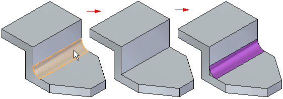 当您拆离面时,相邻面通常会修改以确保实体模型的完整性。例如,当您拆离一个诸如圆形的圆角面时,相邻面的大小和形状会改变。